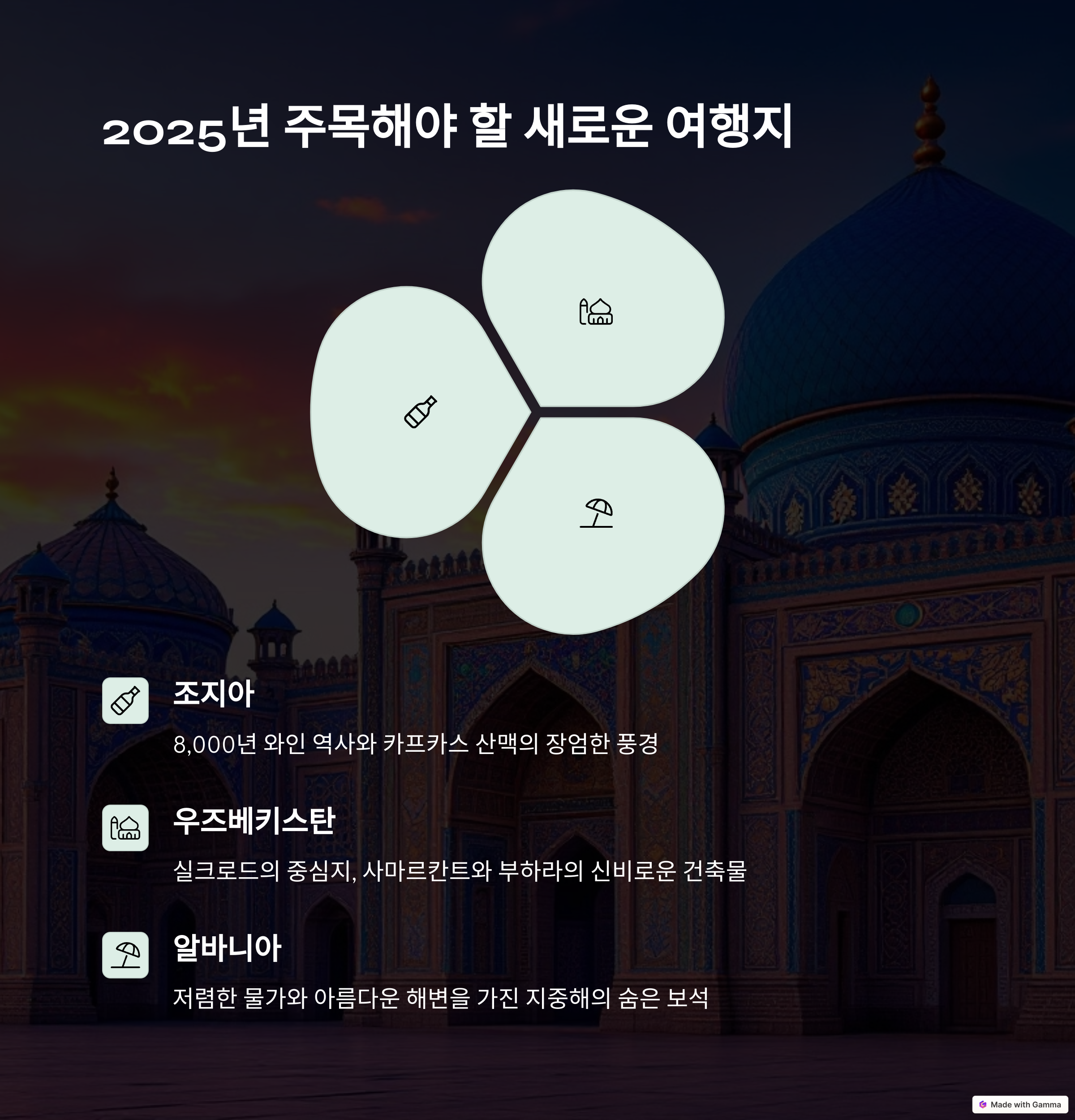 이러한 트렌드에 맞춰, 2025년에 가장 주목받을 여행지 10곳을 선정했습니다.